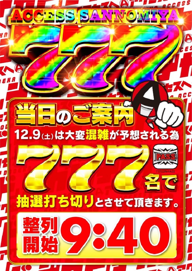 当日は大変混雑が予想される為、「777コンパス」での