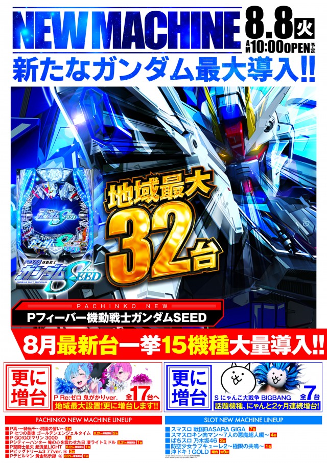 🌈8月8日(火) デカアクセス誕生1周年&新台入替初日🌈