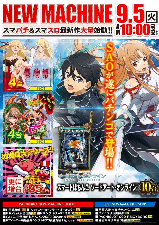 9月5日(火)新台入替❗ スマスロ&スマパチ最新台大量始動❗