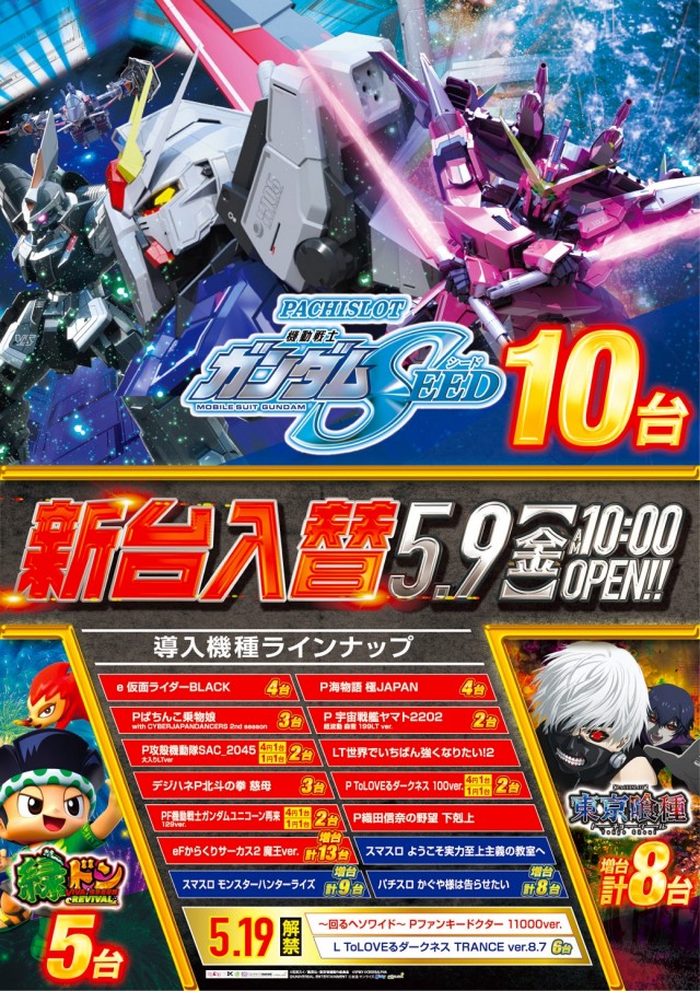 ★ 5月9日(金)新台入替 AM10時OPEN ★
