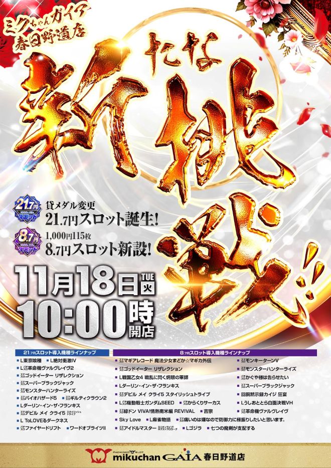 ミクちゃんガイア春日野道店の機種情報