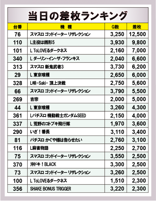 ※記事内の差枚表記はぱちタウン独自調査に基づくものです。ご了承ください。