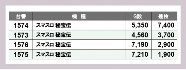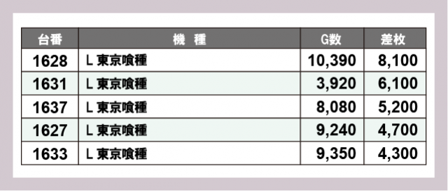 ※差枚数順に掲載しています