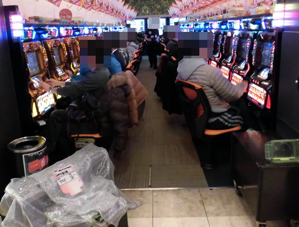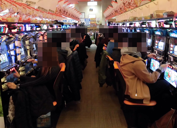 ホール内の様子をみてみると、パチンコ・パチスロともにほぼ空き台がないほどにぎやかな状況となっており、ホール全体が明るい雰囲気に包まれていた。