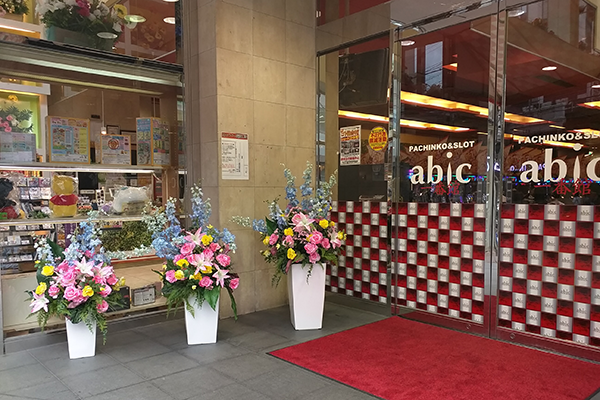 ホールの入り口には花が飾られ、華やかな雰囲気も印象的。明るい気持ちで遊技を始めることができそうだ。