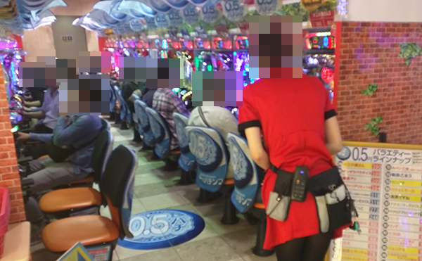 4円パチンコでは、「CR牙狼 魔戒ノ花」がほぼ満席と大人気。遊技中のプレイヤーの多くが笑顔を浮かべていたこともあり、シマ内はおおいに活気づいていた。