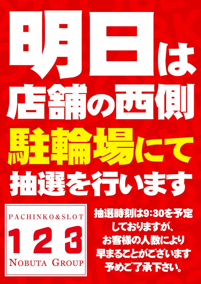明日のお知らせ★新台営業開始‼10時OPEN★