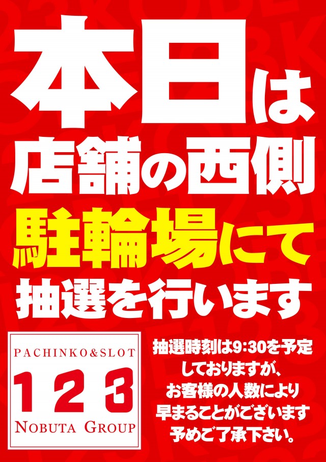 本日のお知らせ★新台営業開始‼10時OPEN★