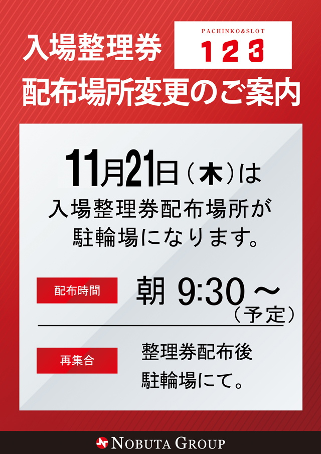 09:45 入場抽選 09:50 再整列 10:00 入場開始 |