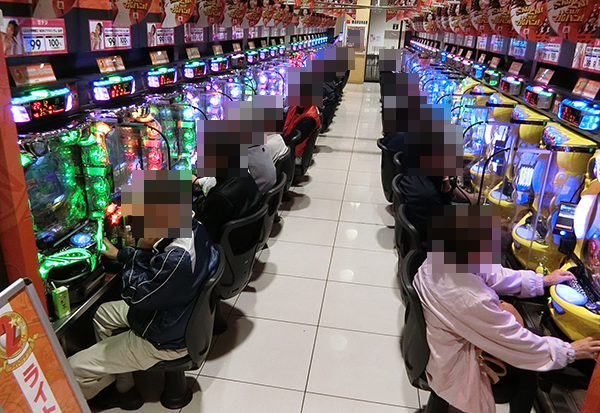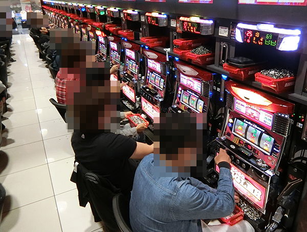 「ゴーゴージャグラー」や「スーパーミラクルジャグラー」が活気づいており、プレイヤーたちはイキイキとした様子で遊技を楽しんでいた。