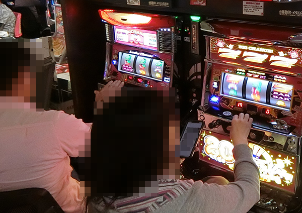 パチスロコーナーをみてみると、「アイムジャグラーEX AnniversaryEdition~プレミアムピンク~」がとくに活況。明るい雰囲気が感じられ、プレイヤーたちが満足感を得られていることも伝わってきた。