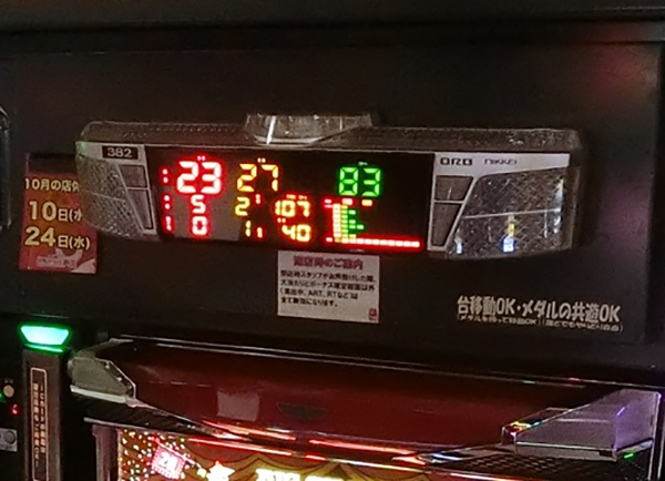 また、データカウンターに表示された数値にも目がとまった。なかには、ボーナス合算確率が1/107といった台も確認している。