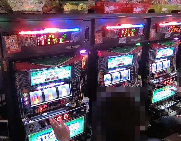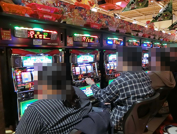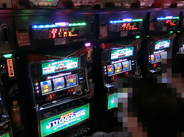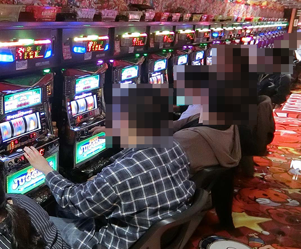 正面の入り口から入店し、パチンココーナーでたくさんのプレイヤーが遊技をおこなっている姿を目にした。楽しい気分を味わいつつ、パチスロコーナーへ向かうとジャグラーシリーズが大盛り上がり。