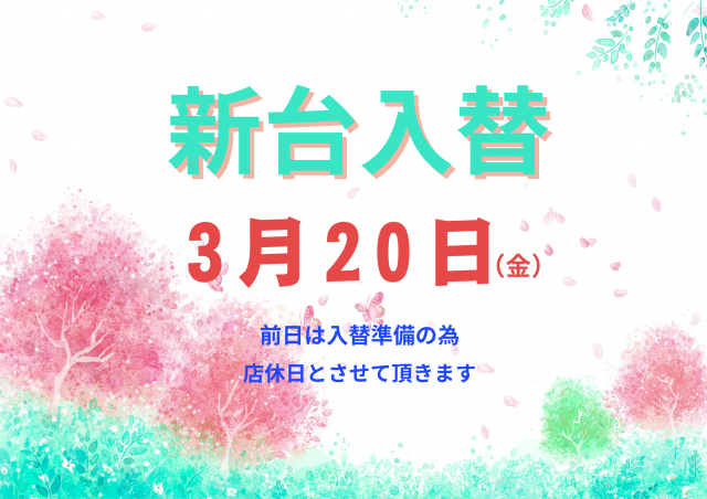 本日入替店休日❗明日新台入替初日❗❗