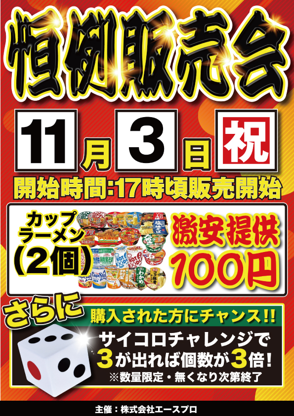 10月23日は入場抽選を行います。AM9:30~抽選開始