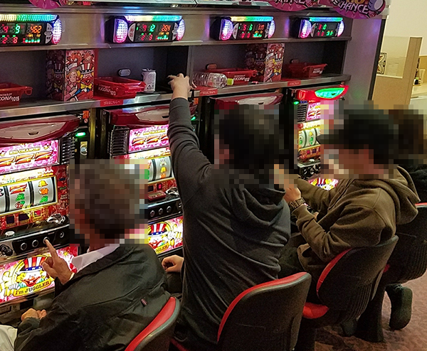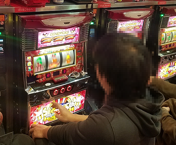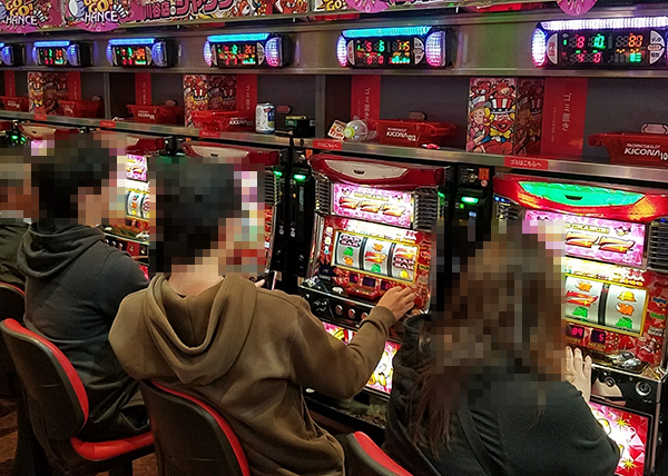 シマのカドから5台並びで設置されており、3台が稼働。小役をカウントしながら遊技をおこなう姿を通して、期待を持っていることも伝わってきた。