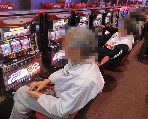 16時ごろのホールには多くのプレイヤーが来店しており、いたるところで楽しそうに遊技をおこなう姿を目にしている。とくに活気を感じたパチスロコーナーをみると、うらやましいと思うくらいに華やかな光景が広がっていた。