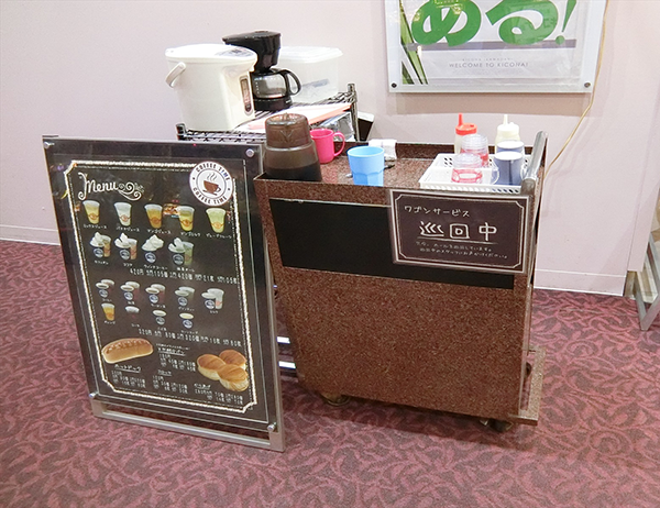 ホール内には、ワゴンサービスもおこなっているカフェを併設。休憩中だけでなく、遊技をおこなっているあいだにもスムーズにドリンクが味わえる。また、軽食も用意されているため、お腹がすいたときに利用してみても良いだろう。