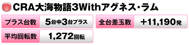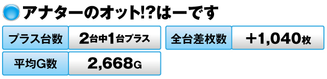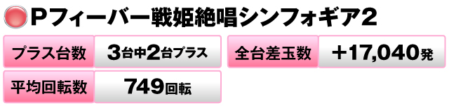3台中2台がプラスで全台差玉数は+17,040発をマークした。