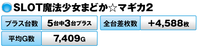 5台中3台がプラスで全台差枚数は+4,588枚だった。