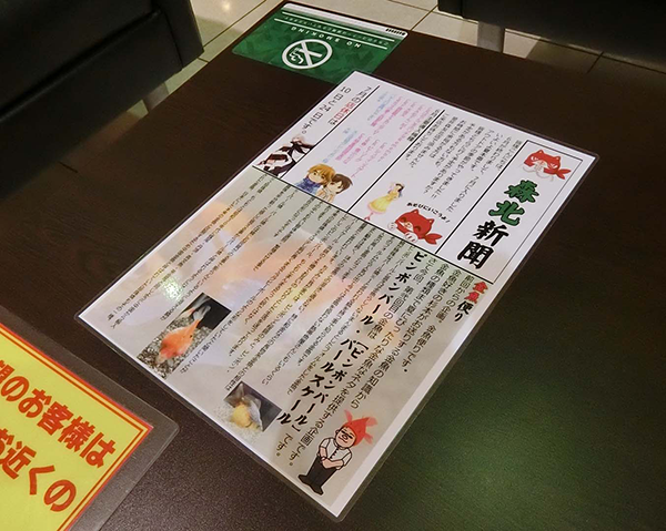 また、スタッフの手作りの新聞を発見。読んでみると金魚についての記事が掲載されており、スタッフのあたたかみのある人柄も感じられた。
