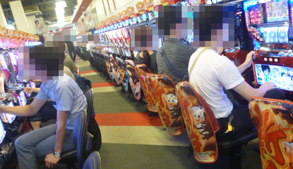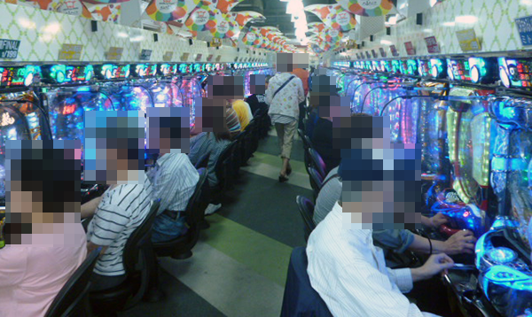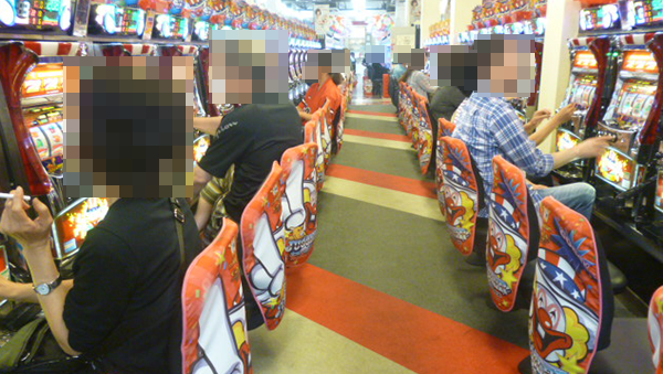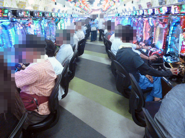 14時を過ぎた頃の4円パチンコをみると、海物語シリーズがほぼ満席と大盛況。