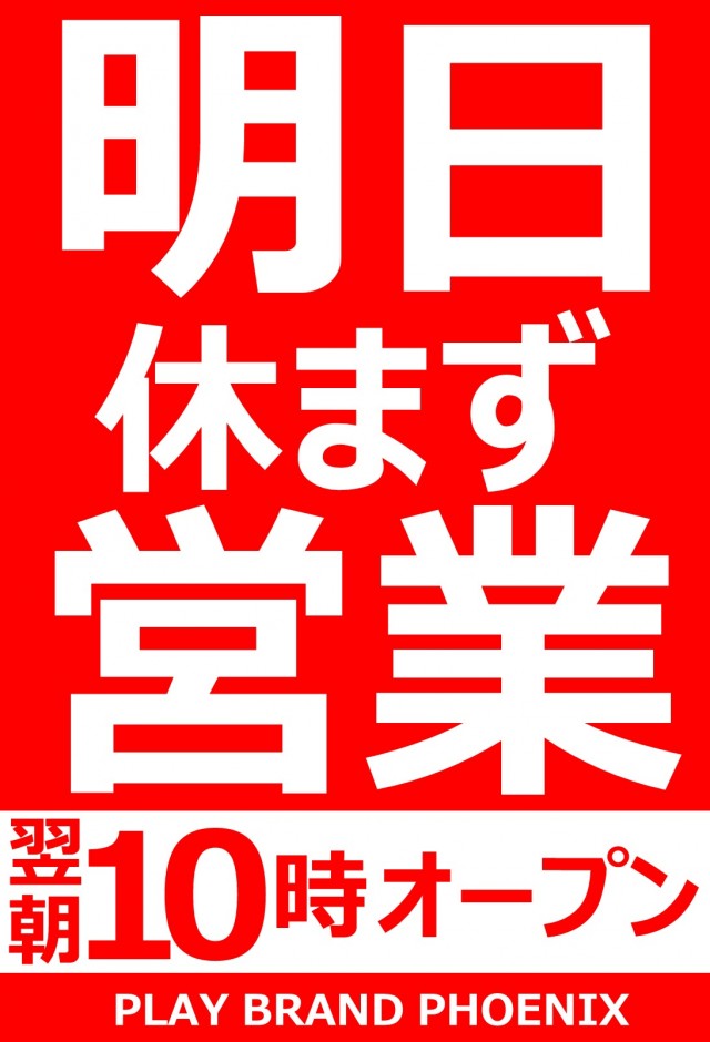 明日、7月30日は「火曜日」ですが、フェニックスは休まず営業します♪
