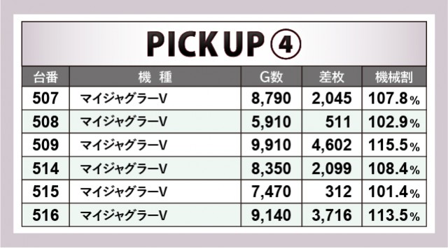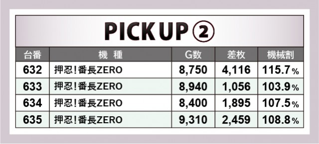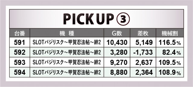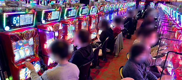 『押忍!番長ZERO』『SLOTバジリスク~甲賀忍法帖~絆2』『マイジャグラーV』といった多くのファンを魅了する人気機種では、横並びで優秀台を確認できる。各台がしっかりとプラス差枚を記録しており、あからさまな状況を察知できるかが勝負の分かれ目になったことだろう。3~4台が連続してドル箱を使用する光景は圧巻で、遊技するファンもまた、好況に自信を持ったはずだ。