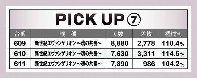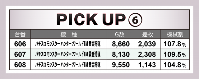 まずは優秀30台PICK UPから。30台のうち28台が差枚数+2千枚以上、さらに12台が+3千枚以上という結果に。後述する好況スポット以外では『パチスロ デビル メイ クライ 5』が+5千枚突破、2台合計で+6千枚近くとなった『S聖闘士星矢 冥王復活』、共に+3千枚を超えた『SLOTマッピー』『パチスロ北斗の拳 宿命』『Sルパン三世』などの活躍が目を見張った。