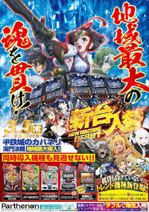パルテノン11月21月に兵庫県姫路市の「パルテノン」にて、密着取材をおこなった。明るい雰囲気を感じられたホール内では、じっくりと楽しめているといったプレイヤーが多かったことも印象に残っている。【パチンココーナー】「CRスーパー海物語IN沖縄4…