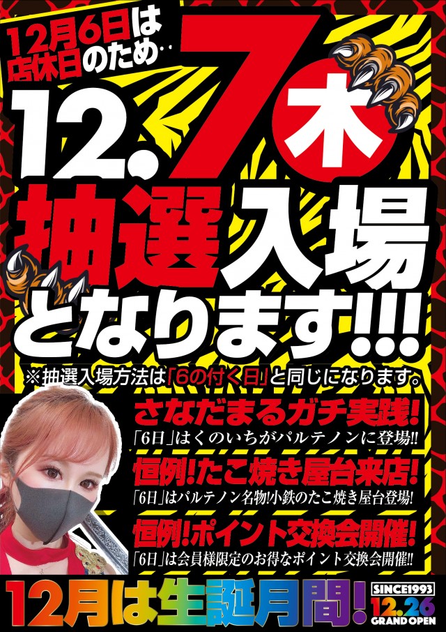 本日12月7日 ✨新台初日&さあ、いこう!!パルテノン✨