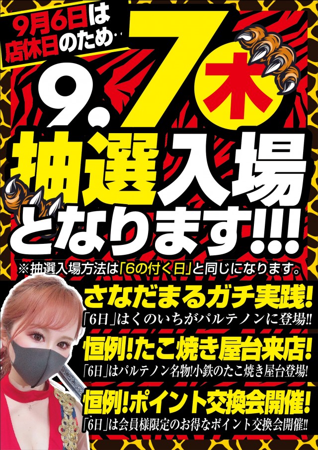 本日9月7日(木) ✨新台初日&さあ、いこう!!パルテノン✨