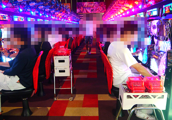 午後のパチスロでは、「ミリオンゴッド-神々の凱旋-」や「バジリスク~甲賀忍法帖~絆」に機種の性能を最大限まで引き出しているといったプレイヤーを発見。明るい表情からは、充実感を得ていることが伝わってきた。