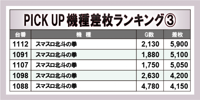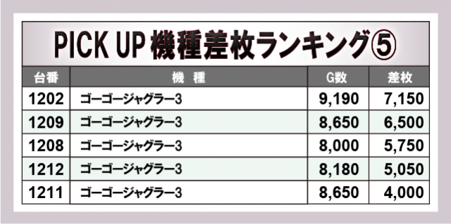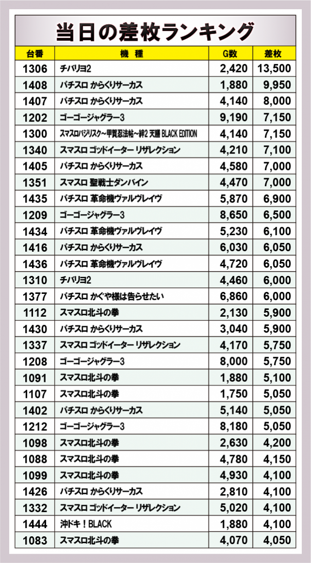 ※差枚数順に掲載しています。