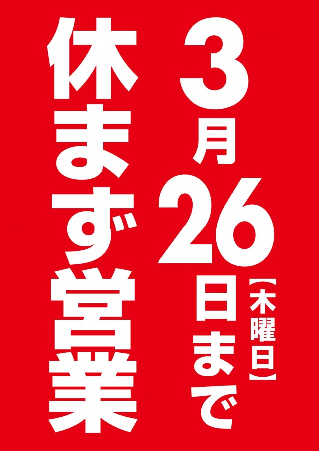 明日26日木曜日も休ま ず営業!