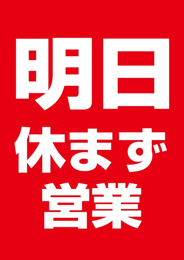 明日27日木曜日も休ま ず営業!