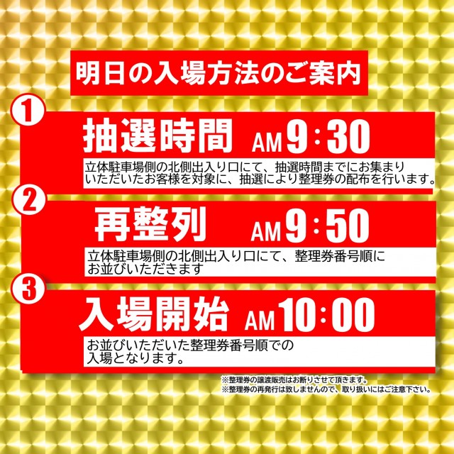 ✅AM10:00 オープン✅笑顔あふれる接客の徹底✅抽選入場✅缶詰市