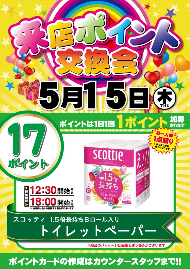 ★本日5月15日木曜日ポイント交換会開催♪♪