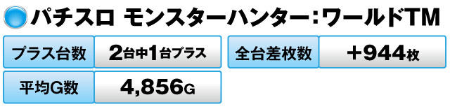 台数が多いだけに稼働は伸び悩んだが、全体の3分の1がプラス台、全台差枚数も2,000枚近くとなった。