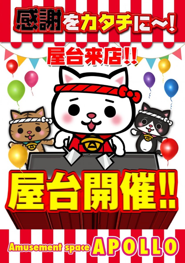 明日は応援屋台来店×アポロ厳選賞品入荷日です♪♪