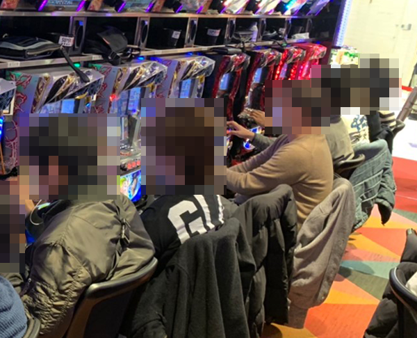 確認時は当然のようにフル稼働。イキイキとレバーを叩く姿がズラリと並んでいる光景は壮観であり、プレイヤーたちは心から遊技を満喫できているようであった。