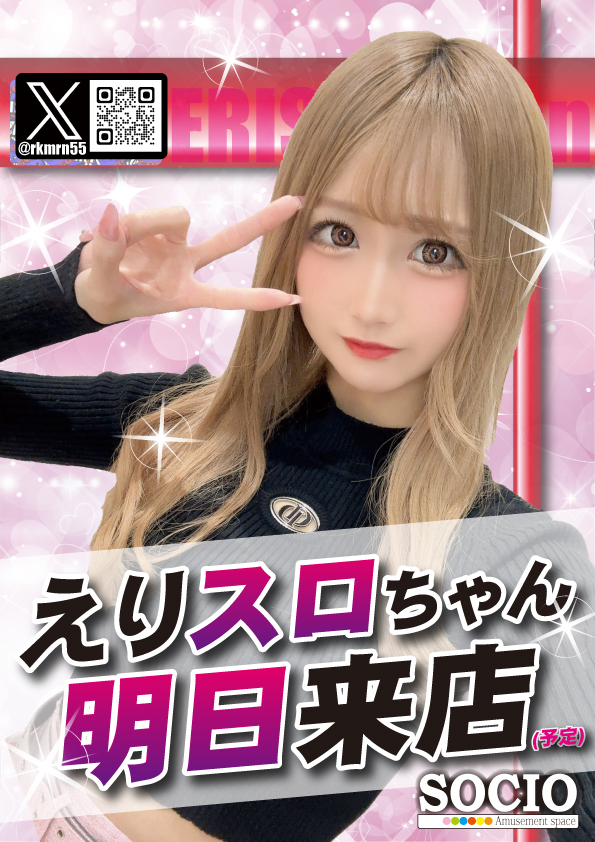 明日、えりスロちゃん来店予定🎶🎶🎶🌞🌞🌞