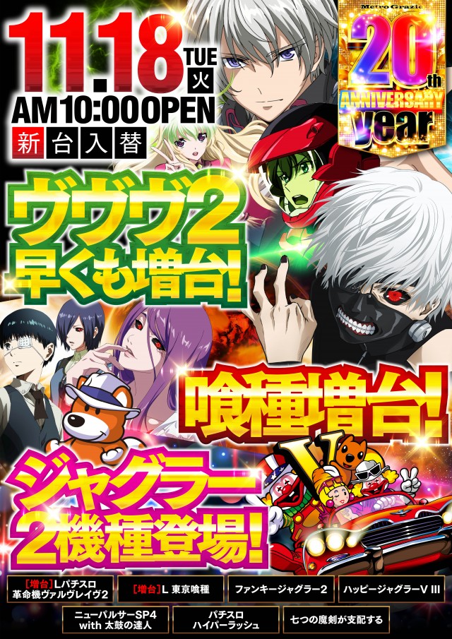 明日11月18日[火]新台入替初日!!10時OPEN!!