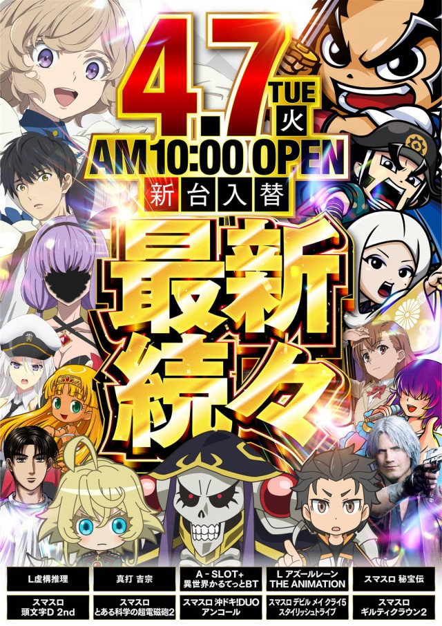 明日4月7日[火]新台入替初日!!10時OPEN!!