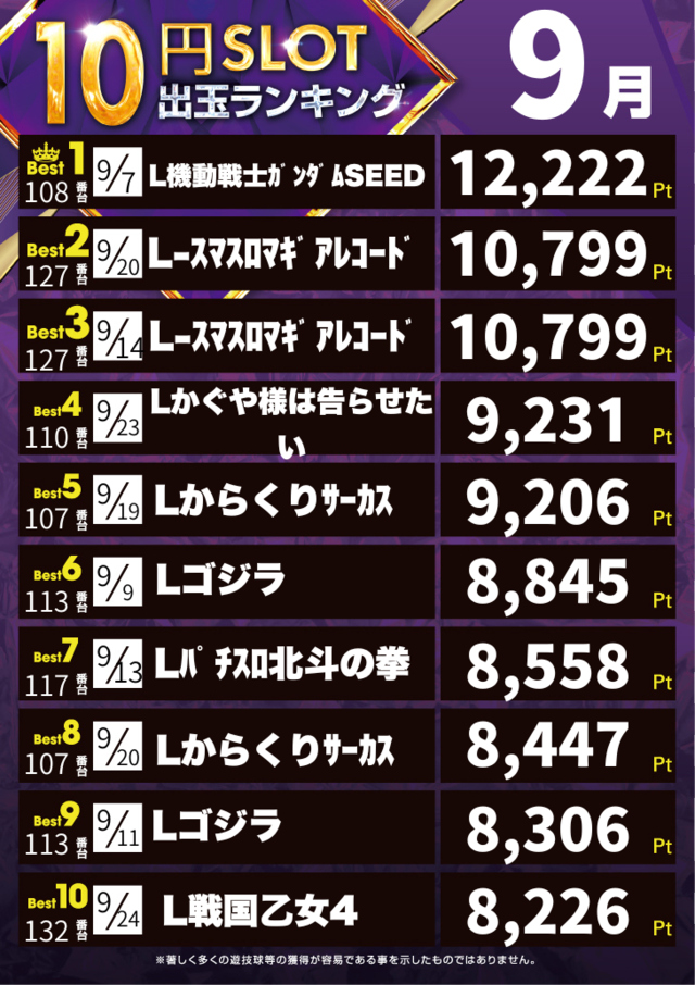 1位 9月9日(火) 2位 9月20日(土) 3位 10月7日(火)