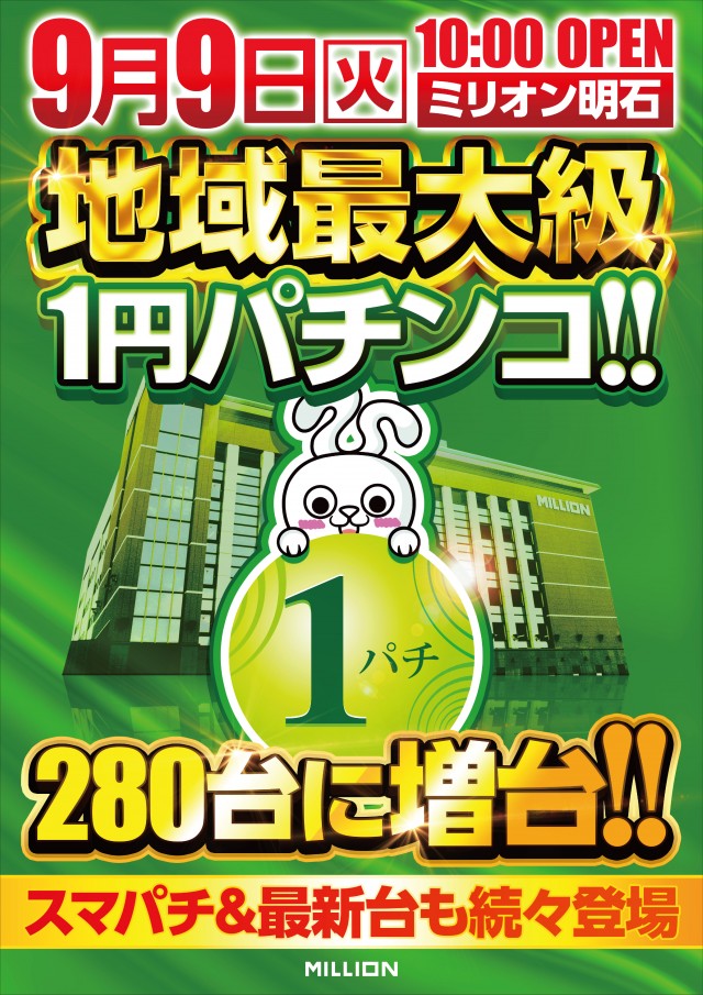 🌻明日、9月9日(火)🌻新台入替❗1P増台 合計280台❗