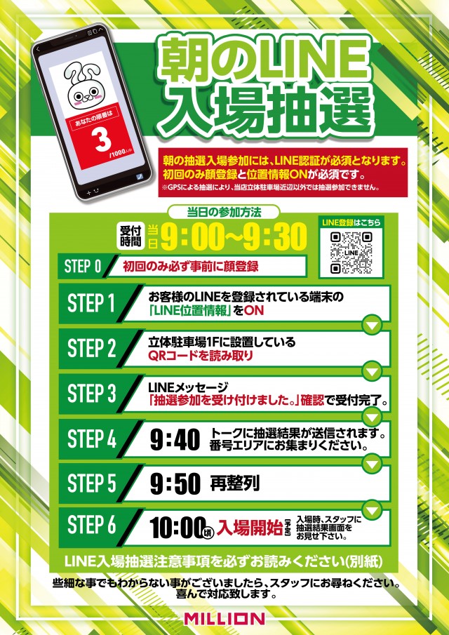 ✅LINE入場抽選 (当日参加 受付時間9:00~9:30)