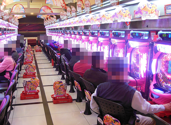 パチンコ、パチスロともに、低貸し玉コーナーも多くのプレイヤーでにぎわっていた。