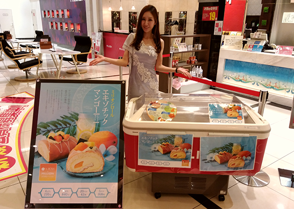 賞品コーナーにはミリオンロールなるものがありました! マンゴーのトッピングが夏を感じさせますねぇ(^q^)