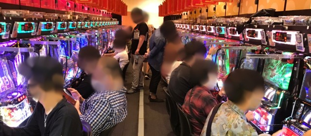 当日は、横並び数台が好調となるホットスポットが5か所も出現。盛り上がりも出玉もアップ、その様子に通路にファンが足を止めているのを随所で確認。以下、5か所をそれぞれ具体的にピックアップしよう。